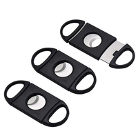 カスタムロゴシンプルブラックダブルブレードプラスチックシガーカッターテーブルトップアクセサリーシガー用