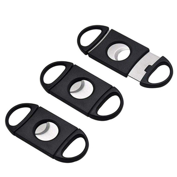 قطع سيجار بلاستيكية بشفرات مزدوجة سوداء اللون بتصميم بسيط مع شعار مخصص حسب الطلب قطع سيجار لأعلى الطاولة